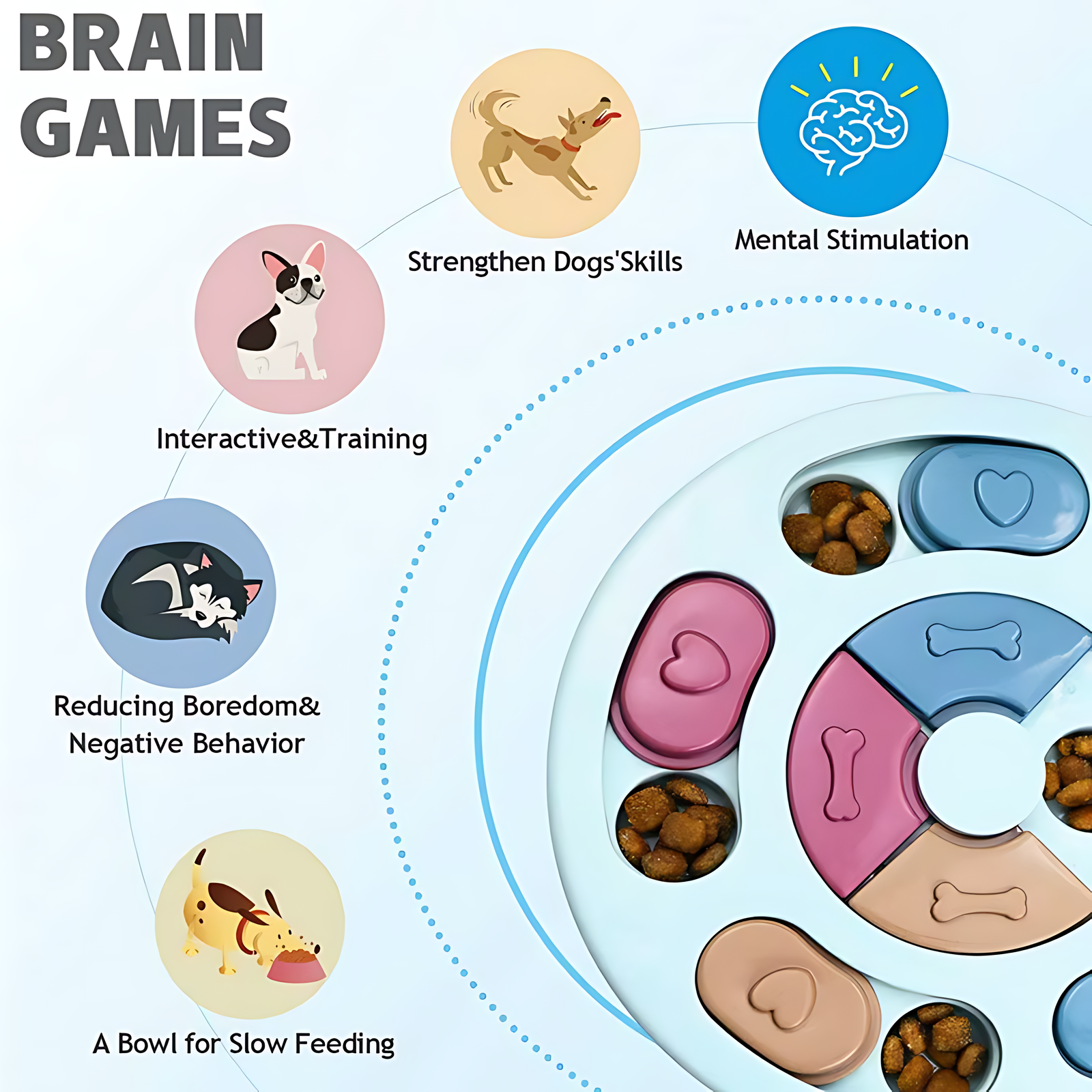 This puzzle bowl is suitable for daily feeding and enrichment activities for both puppies and adult dogs.